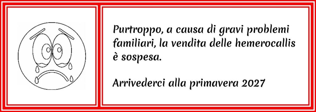 Per ogni varietà sono disponibili pochi rizomi, quindi è meglio prenotarli al più presto possibile. Se un’hemerocallis non fosse più disponibile, verrà indicato sulla fotografia stessa con la scritta “Esaurita”.